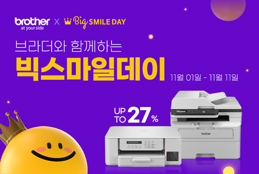 브라더인터내셔널코리아(이하 브라더코리아)가 오는 11월 1일부터 11일까지 G마켓과 옥션에서 진행되는 '빅스마일데이' 프로모션에 참여한다고 31일 밝혔다. ......