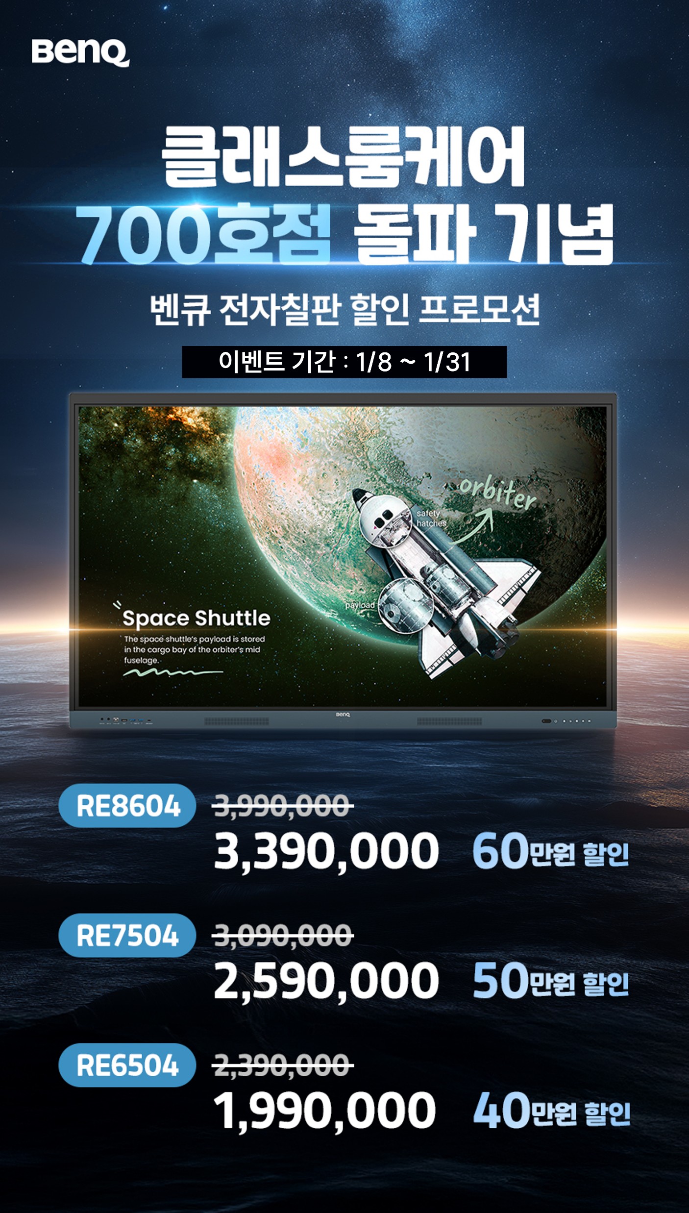 벤큐가 자사 전자칠판 고객 인증 프로그램 '클래스룸케어 인증점'이 전국 700호점을 돌파했다고 밝혔다. 이를 기념해 벤큐는 2026년 1월 8일부터 1월 31일까지 전자칠판 RE ......