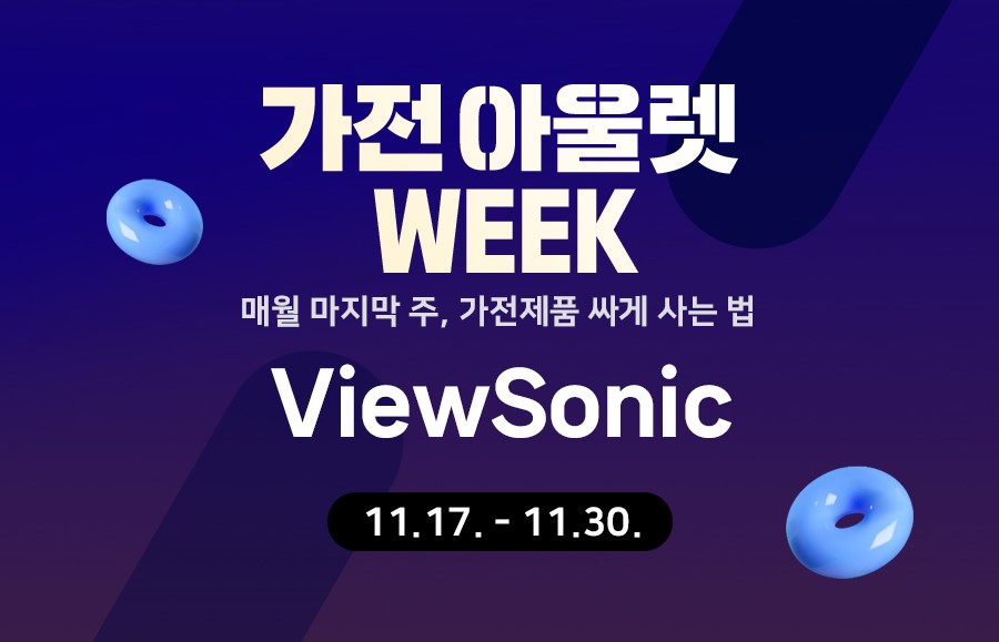 뷰소닉이 네이버 스마트 스토어 '가전 아울렛 WEEK' 프로모션을 진행한다고 17일 밝혔다. 이번 행사는 11월 17일부터 30일까지 진행되며, 뷰소닉 인기 빔프로젝터 3종을 최대......