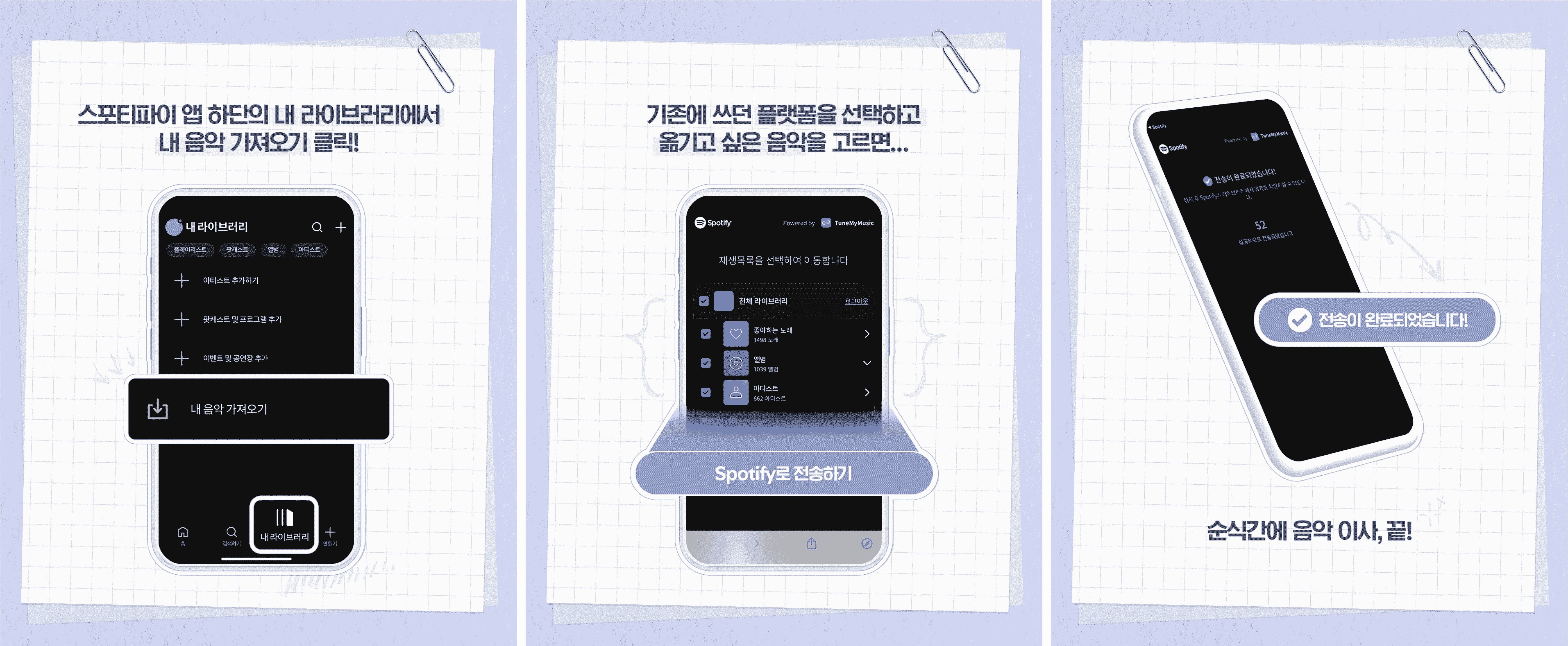 스포티파이가 다른 플랫폼에서 이용하던 플레이리스트를 손쉽게 옮길 수 있는 '내 음악 가져오기' 기능을 9일 도입했다. 이번 기능은 외부 서비스인 튠마이뮤직(......