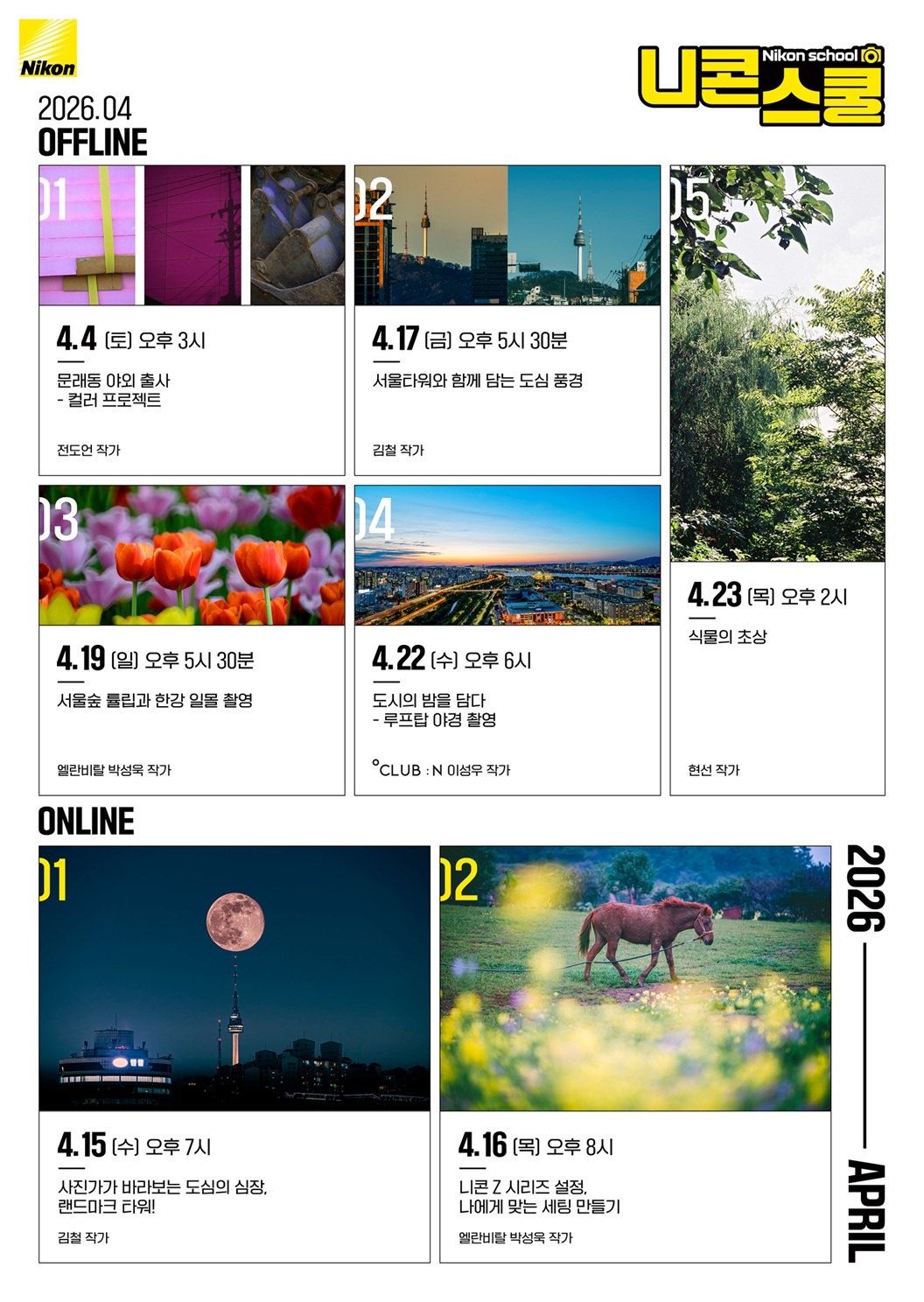 니콘이미징코리아가 봄 출사 시즌을 맞아 야외 실습과 촬영 노하우를 담은 4월 니콘스쿨 커리큘럼을 공개한다고 23일 밝혔다. 이번 달에는 개화 시기에 맞춰 도심 속 다양한 풍경을 담......