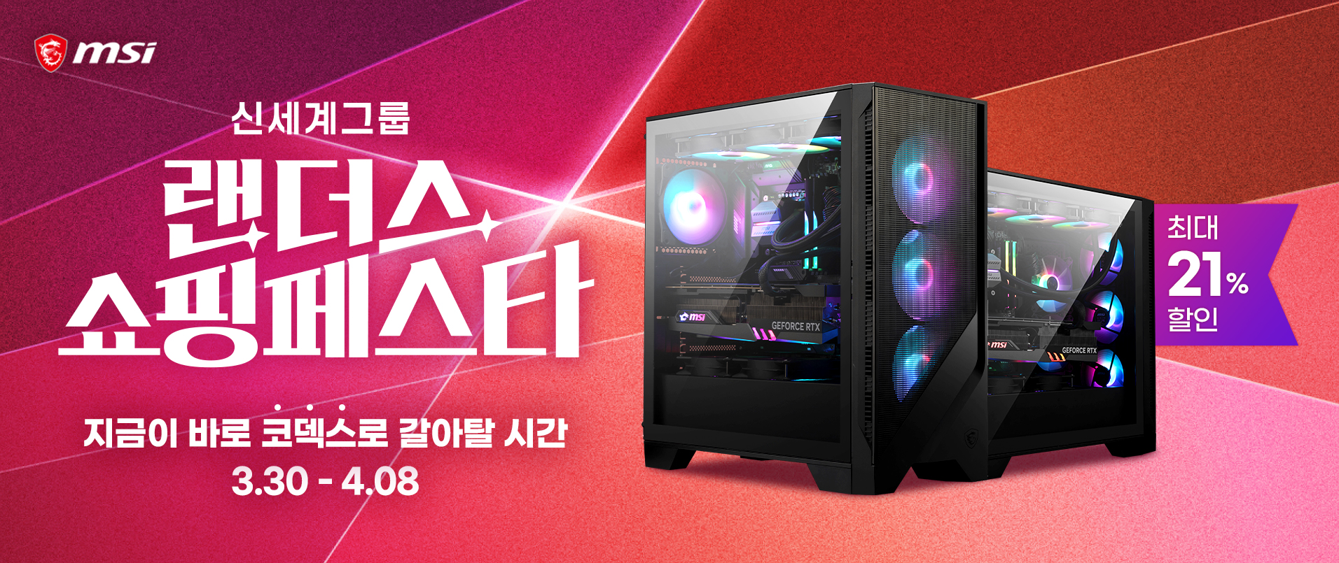 엠에스아이코리아(MSI Korea)가 지마켓과 옥션에서 4월 8일까지 진행하는 '랜더스 쇼핑 페스타'에 참여, 자사 게이밍 데스크탑 'MSI MAG 코덱스'......