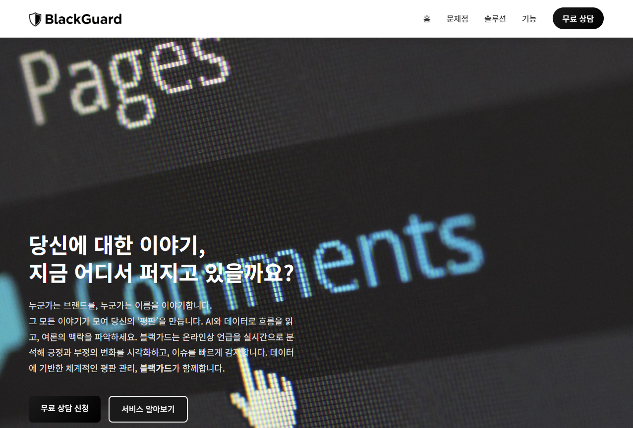 AI 기반 사업개발 스튜디오 '테닛(대표 정승헌)'이 온라인 평판 관리 서비스 '블랙가드(Blackguard)'를 31일 공식 론칭한다. '블랙가드'는 AI를 활용해 온라인상 브랜......