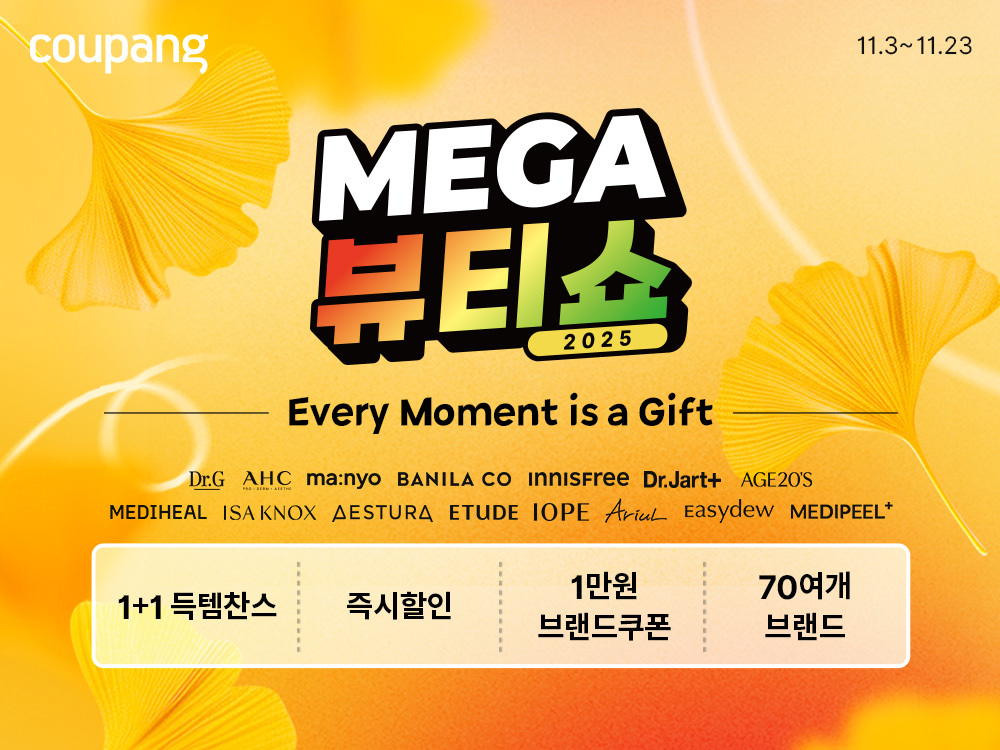 쿠팡이 인기 뷰티 브랜드 제품을 특별한 혜택과 함께 선보이는 '메가뷰티쇼'를 오늘부터 23일까지 3주간 진행한다. 메가뷰티쇼는 쿠팡이 연 3