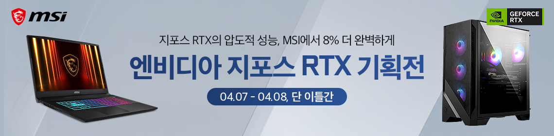 엠에스아이코리아(MSI Korea)가 7일부터 8일까지 이틀 간 엔비디아 지포스 RTX 50 그래픽카드를 탑재한 데스크탑과 노트북을 대상으로 기획전을 진행한......