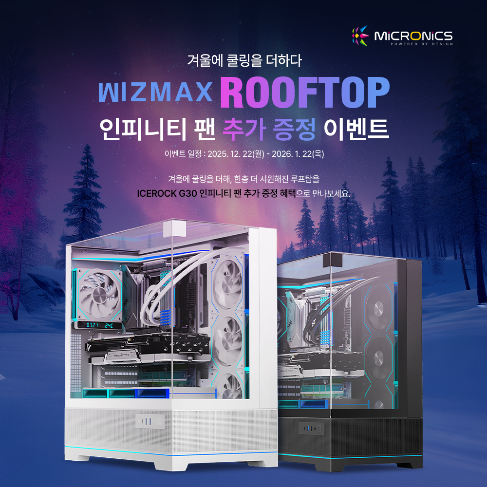 한미마이크로닉스(이하 마이크로닉스)가 프리미엄 PC 케이스 WIZMAX 루프탑 시리즈 구매 고객을 대상으로 인피니티 팬 증정 이벤트를 진행한다고 23일 밝혔......
