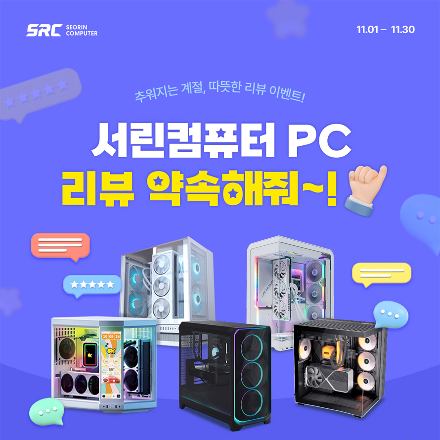 컴퓨터 관련 주요 부품 수입 유통 전문 업체 서린씨앤아이가 운영하는 브랜드 '서린컴퓨터'가 11월 한 달간 SRC PC 리뷰 약속해줘 프로모션을 진행한다. ......